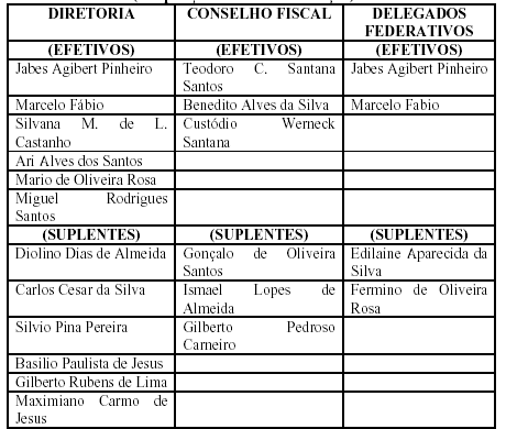 ,conselho fiscal e Delegados Representantes junto á Federação,