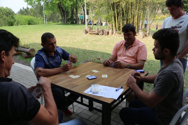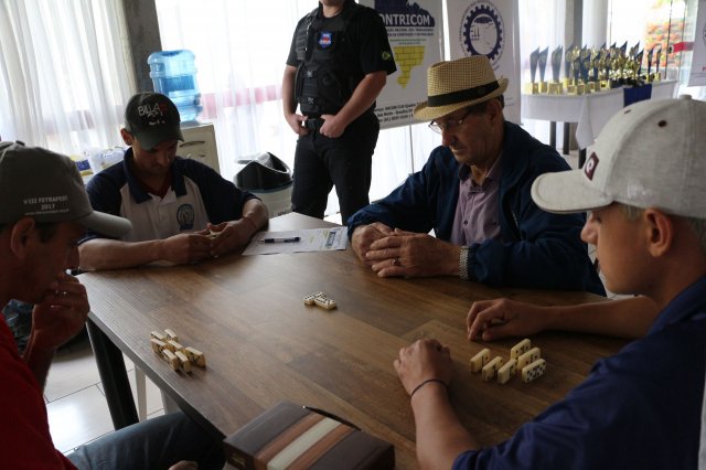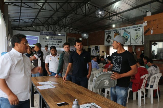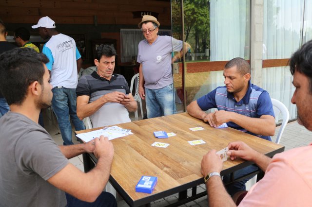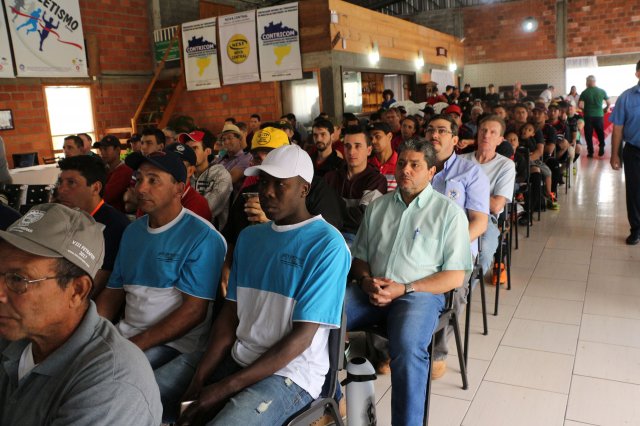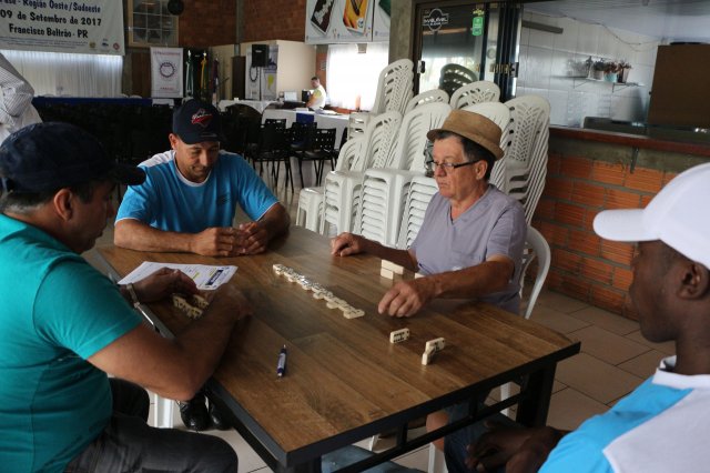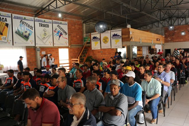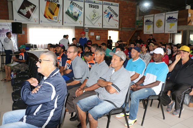 Após a palestra tivemos as disputas de Atletismo, Futebol, Truco, Dominó e Música.