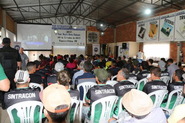A Federação dos Trabalhadores nas Indústrias da Construção e do Mobiliário do Estado do Paraná (FETRACONSPAR) , do Presidente em Exercício, Reinaldim Barboza Pereira, realiza durante os próximos sábados do mês de setembro o VIII FETRAFEST - Festival Esportivo e Cultural da Fetraconspar, onde serão realizadas 4 etapas regionais com os Sindicados Filiados, e a grande etapa final em Matinhos/PR.