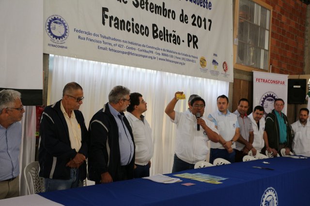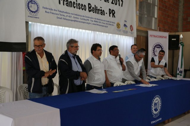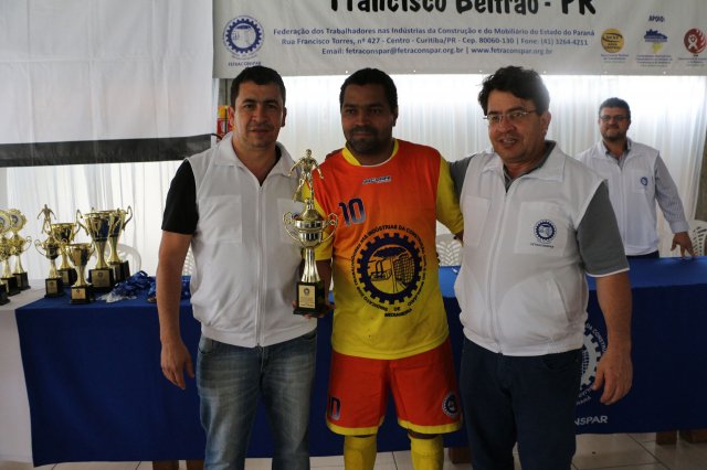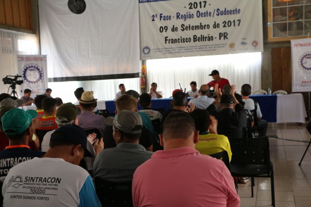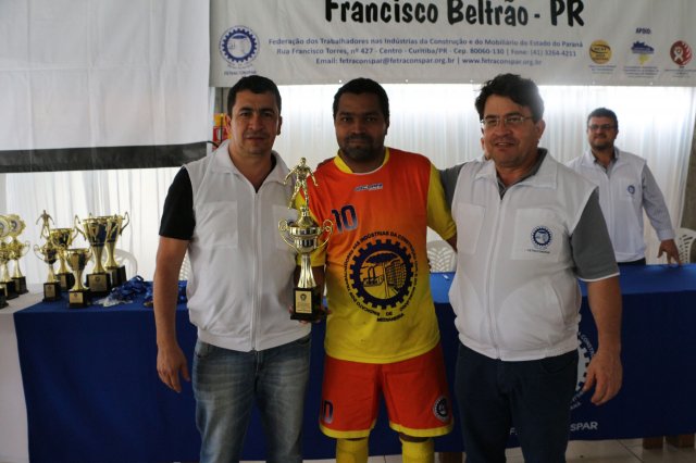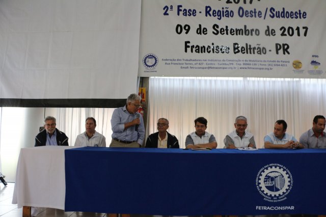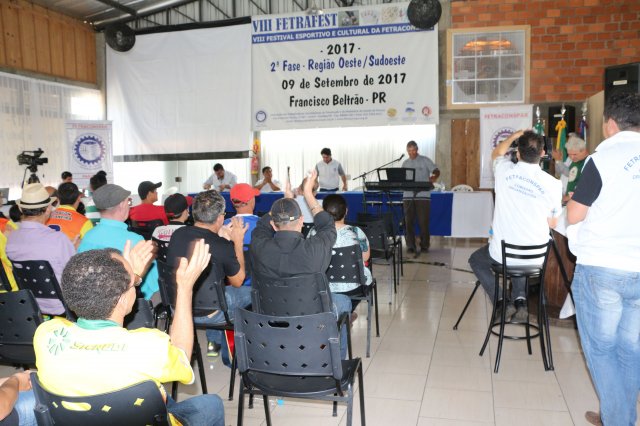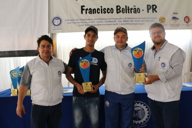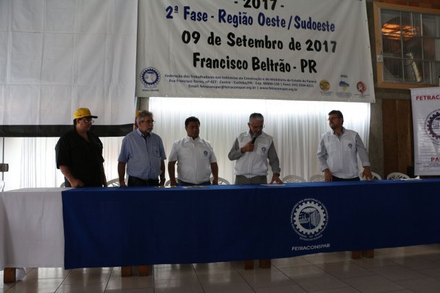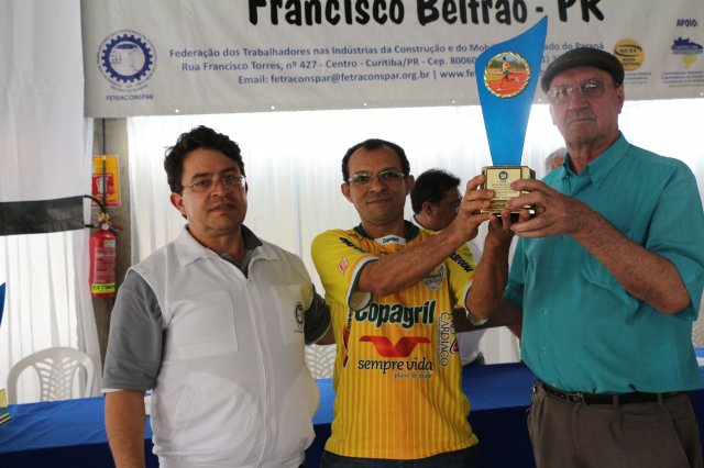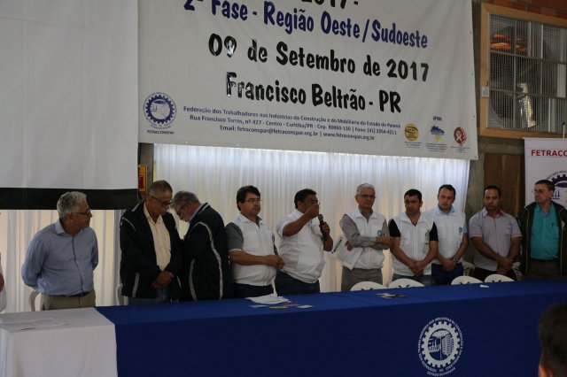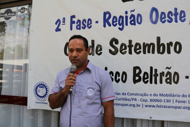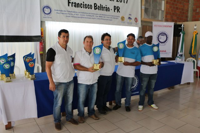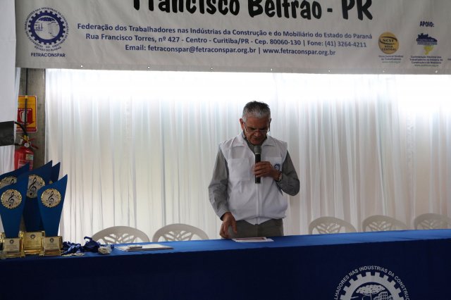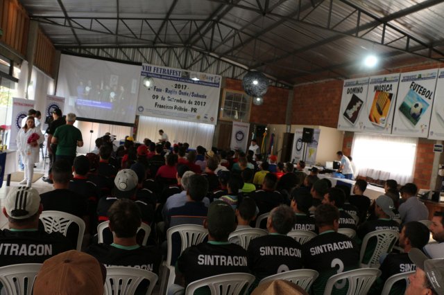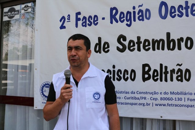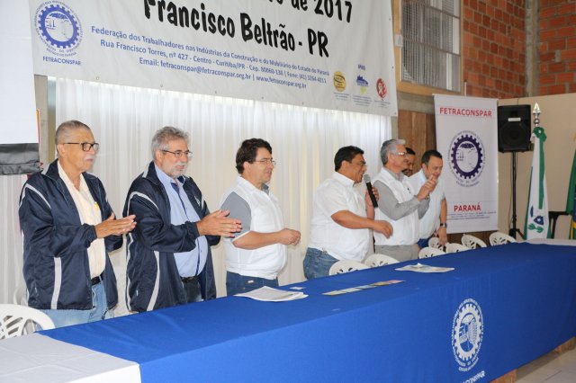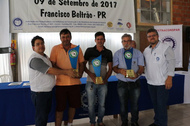 Hoje (09/09) está sendo disputada, na Cidade de Francisco Beltrão, a 2ª Fase do Evento onde participam os sindicados filiados localizados na região Oeste e Sudoeste do Paraná dos quais participam 09 sindicatos: SINTRIMMOC Cascavel, Presidido pelo companheiro Almir Guedes Fernandes; SINTRIVEL Cascavel, Presidido pelo companheiro Roberto Leal Americano; SITRACOCIFOZ, Presidido pelo companheiro Antonio Barros França; SINTRAMADEMÓVEIS FRANCISCO BELTRÃO, Presidido pelo companheiro João Carlos da Silva Machado; SINTRACON FCO. BELTRÃO, Presidido pelo companheiro Osmar Krieger; STICM de Marechal Cândido Rondon, Presidido pelo companheiro Lotário Claas; STICM de Medianeira, Presidido pelo companheiro Climar Ribas dos Santos; STICM de Pato Branco, Presidido pelo companheiro Leandro de Freitas; e o SINTRACON de Toledo, Presidido pelo companheiro Ademir Fogaça. O SINTRACON FCO. BELTRÃO e o SINTRAMADEIRA FCO. BELTRÃO estão sediando o evento este ano.