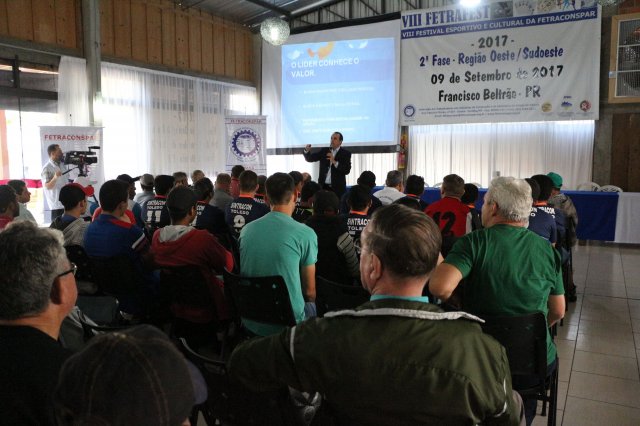 Logo em seguida ocorreu a Palestra Motivacional com o Palestrante: Roberto Rivelino Sene - Prof. Especialista em Educação, Especialista em História do Brasil. Mestre em Ciências Sociais Aplicadas pela UEPG, Professor na Faculdade Campo Real no curso de Administração e de Pós Graduação em Sociologia pela Unicentro.