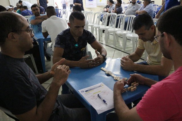 Após a palestra tivemos as disputas de Atletismo, Futebol, Truco, Dominó e Música.
