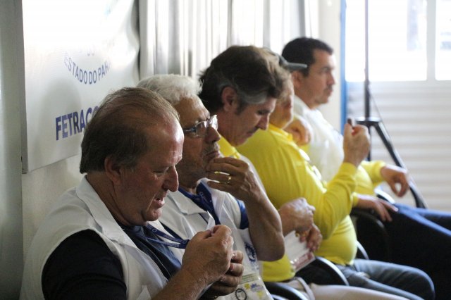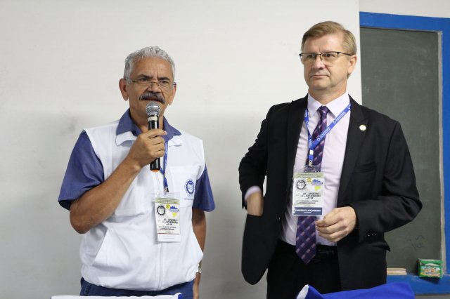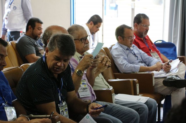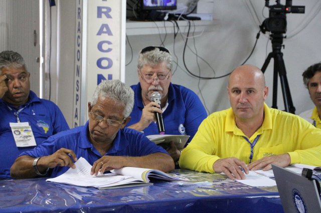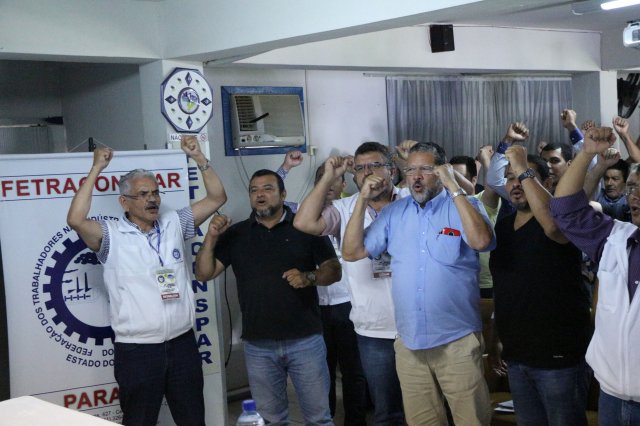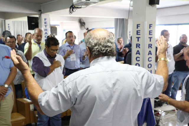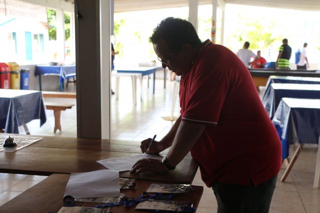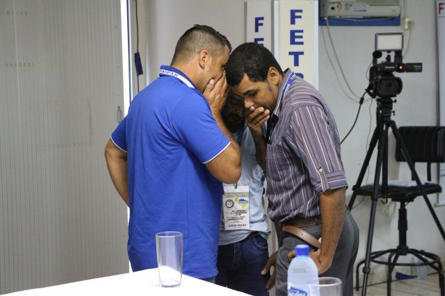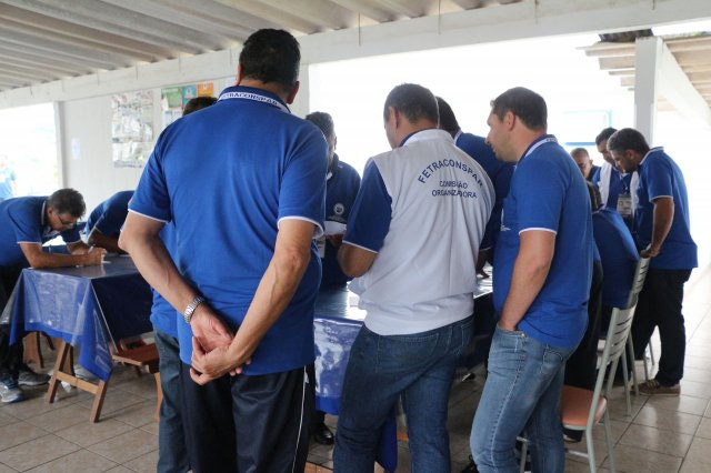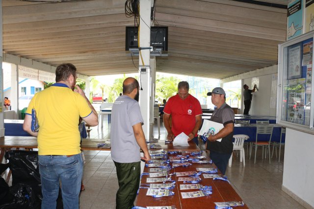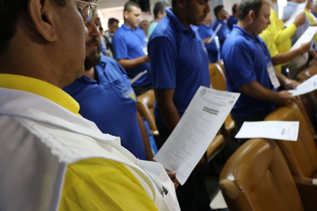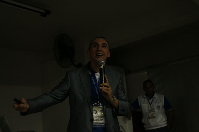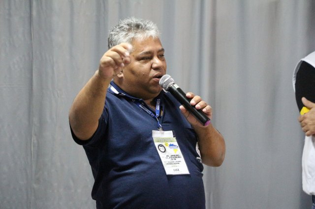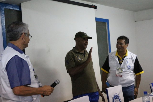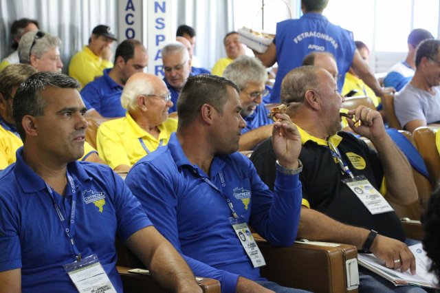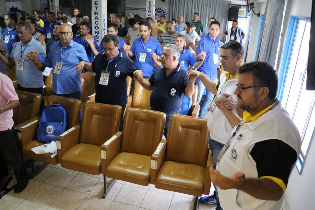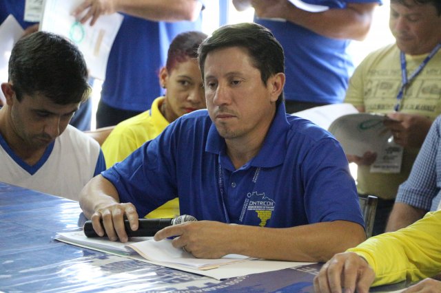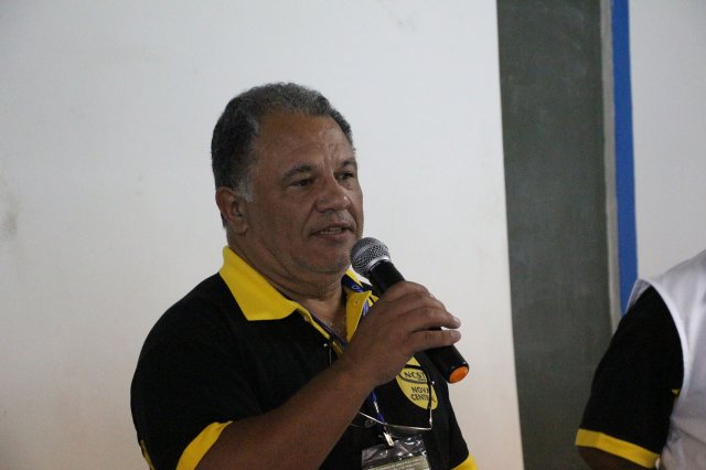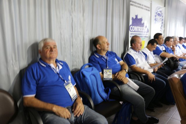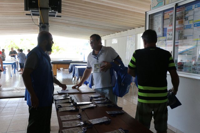 O primeiro dia do Seminário iniciou os trabalhos às 7h30 com o registro fotográfico dos participantes e a filmagem do grito de guerra que é marca de todas as atividades da FETRACONSPAR. Às 8h05, o Presidente em Exercício Reinaldim Barboza Pereira realizou a chamada dos inscritos e iniciou os informes gerais aos presentes. Ao todo, houve 86 inscrições de 38 sindicatos filiados.