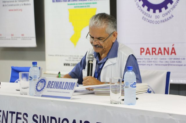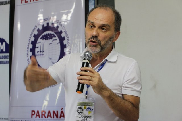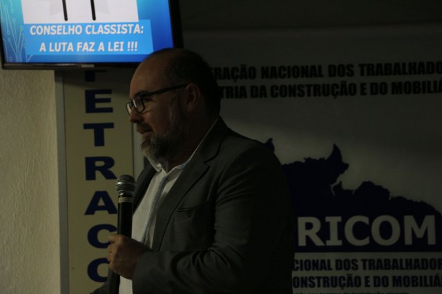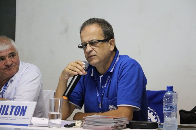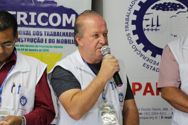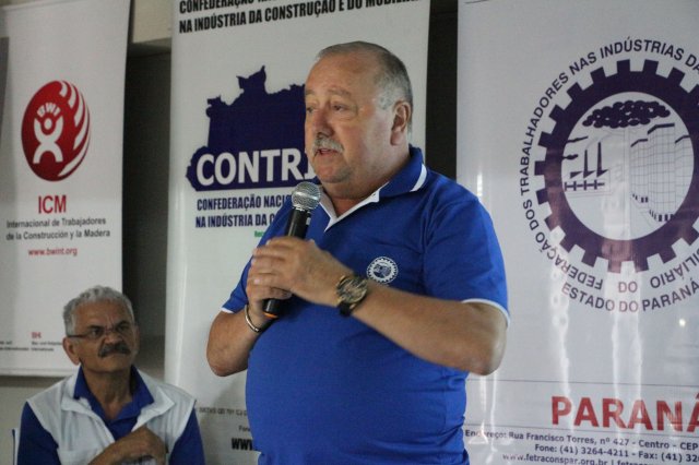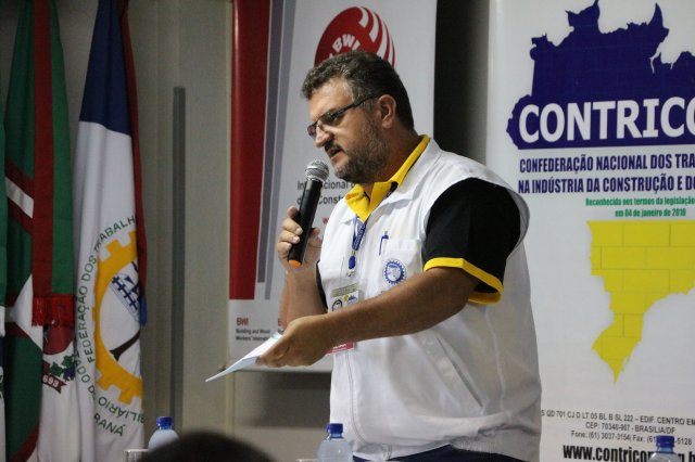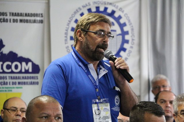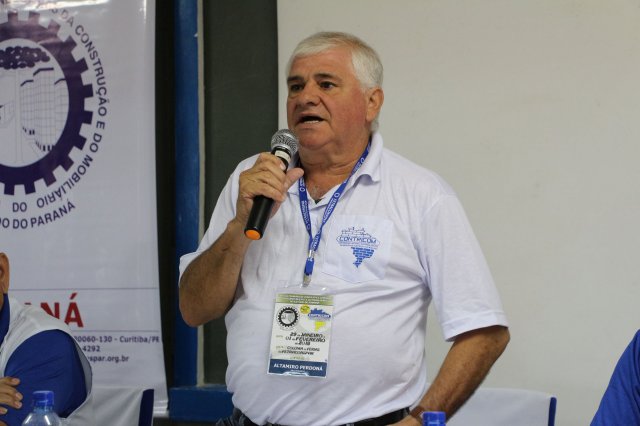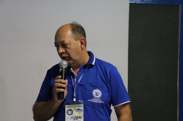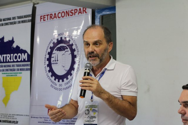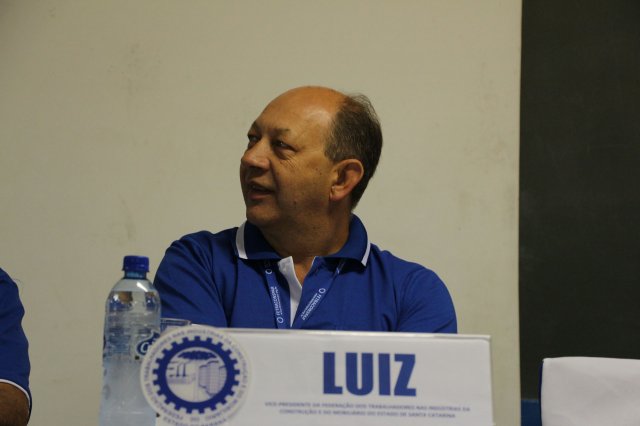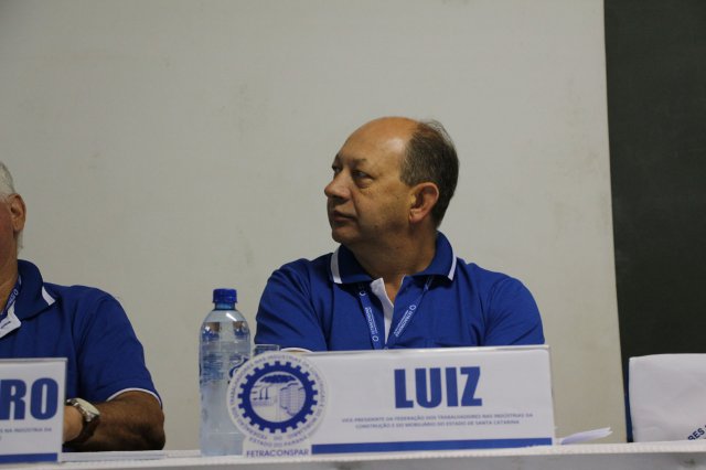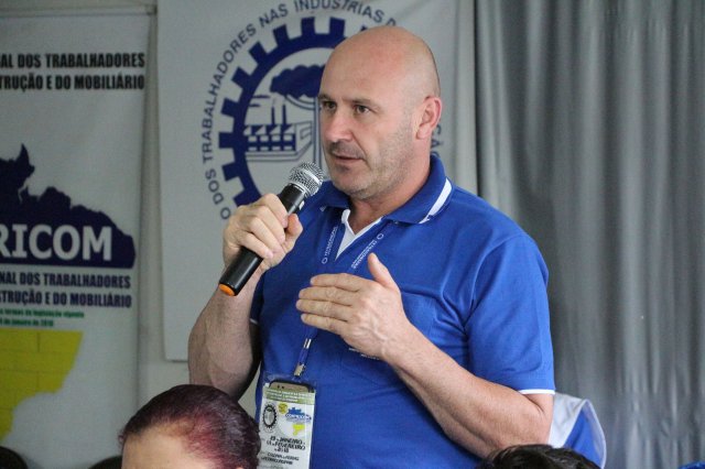Luiz Carlos SchukoskyO Segundo Dia de atividades do Seminário, teve inicio com uma foto geral dos participantes vestindo as camisetas cedidas pela CONTRICOM - Confederação Nacional dos Trabalhadores na Indústria da Construção e do Mobiliário. Ás 8h da manhã ocorreu a chamada dos participantes e a apresentação dos dirigentes que participam pela primeira vez do encontro. Às 8h30, o Presidente Reinaldim Barboza convocou à mesa o Presidente da Confederação dos Trabalhadores nas Indústrias da Construção e do Mobiliário (CONTRICOM), Altamiro Perdoná; O Vice-Presidente da Federação dos Trabalhadores nas Indústrias da Construção e do Mobiliário do Estado de Santa Catarina (FETICOM-SC), Luiz Carlos Schukosky e o Presidente da Federação dos Trabalhadores nas Indústrias da Construção e do Mobiliário do Estado do Rio Grande do Sul (FETICOM-RS), Aroldo Pinto da Silva Garcia, para o “Balanço das Negociações Coletivas de 2018 nos Estados de Santa Catarina e do Rio Grande do Sul”.