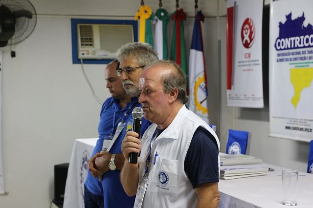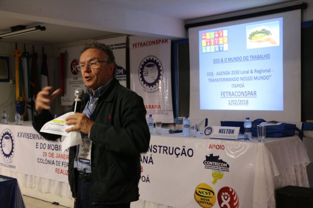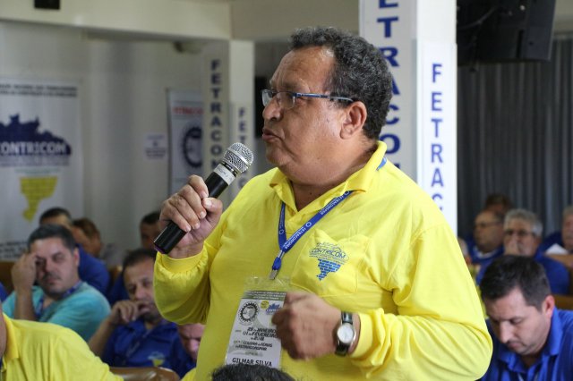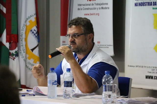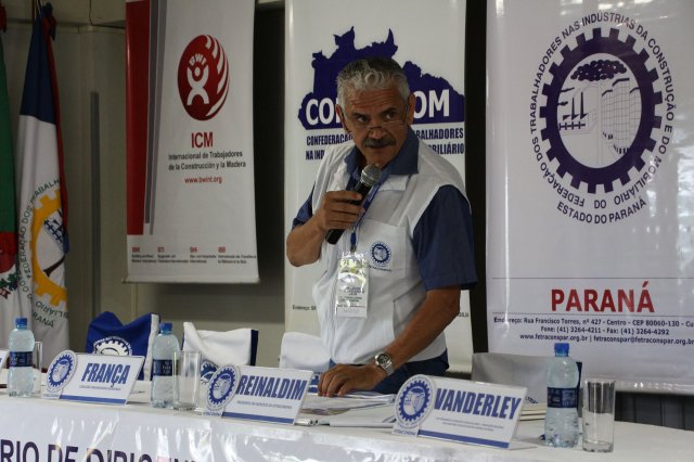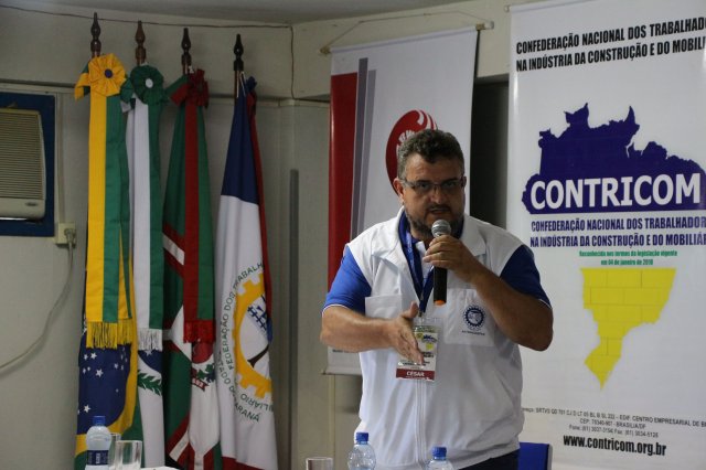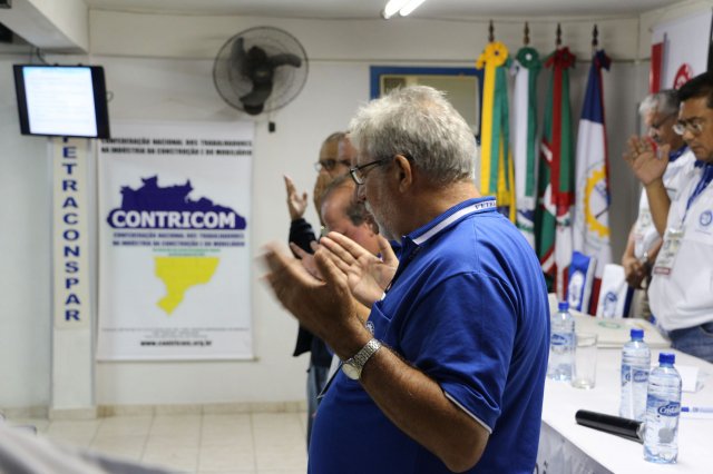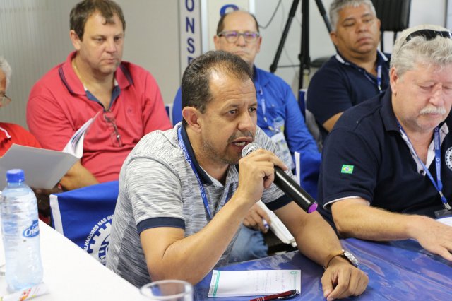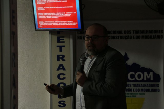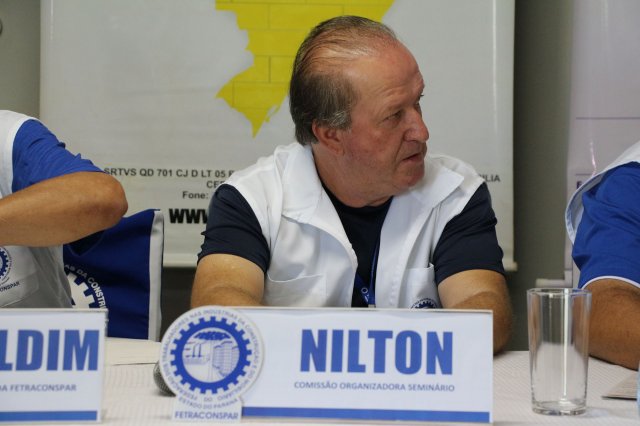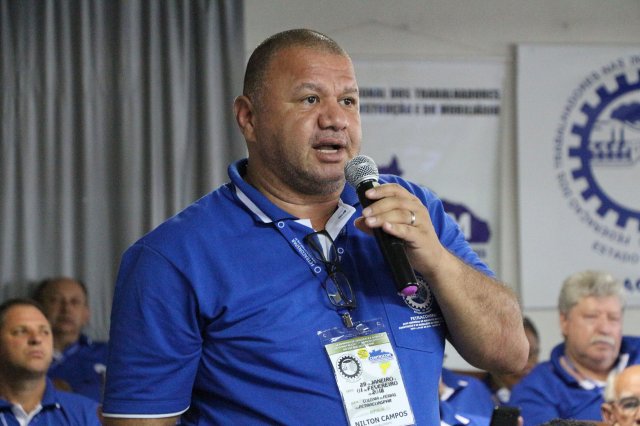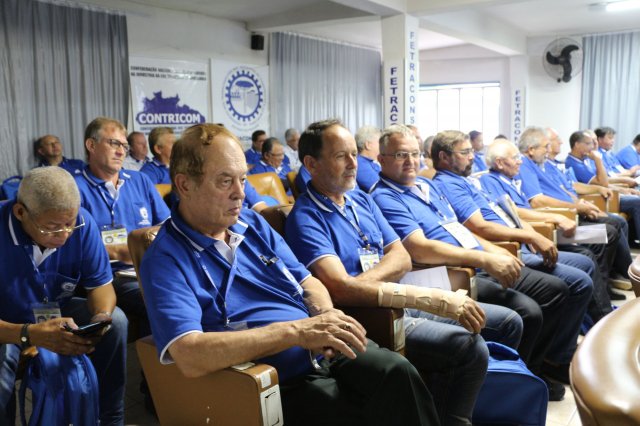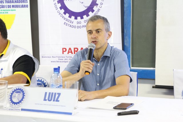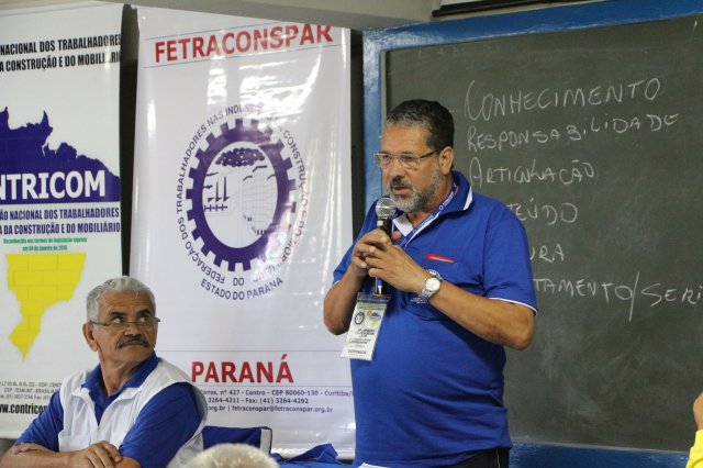 Luiz Carlos SchukoskyO Segundo Dia de atividades do Seminário, teve inicio com uma foto geral dos participantes vestindo as camisetas cedidas pela CONTRICOM - Confederação Nacional dos Trabalhadores na Indústria da Construção e do Mobiliário. Ás 8h da manhã ocorreu a chamada dos participantes e a apresentação dos dirigentes que participam pela primeira vez do encontro. Às 8h30, o Presidente Reinaldim Barboza convocou à mesa o Presidente da Confederação dos Trabalhadores nas Indústrias da Construção e do Mobiliário (CONTRICOM), Altamiro Perdoná; O Vice-Presidente da Federação dos Trabalhadores nas Indústrias da Construção e do Mobiliário do Estado de Santa Catarina (FETICOM-SC), Luiz Carlos Schukosky e o Presidente da Federação dos Trabalhadores nas Indústrias da Construção e do Mobiliário do Estado do Rio Grande do Sul (FETICOM-RS), Aroldo Pinto da Silva Garcia, para o “Balanço das Negociações Coletivas de 2018 nos Estados de Santa Catarina e do Rio Grande do Sul”.