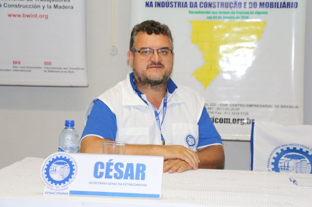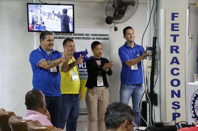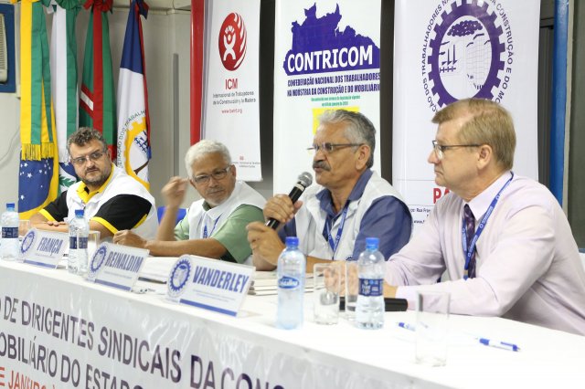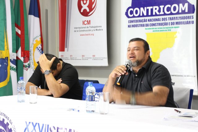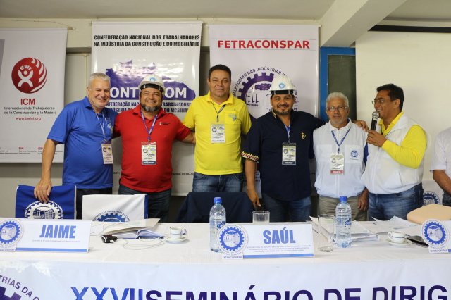 Após uma pausa para café às 10h, todos retornaram ao auditório às 10h15 para o painel “PLANO DE AÇÃO DA CONTRICOM E DA ICM PARA A CATEGORIA DA CONSTRUÇÃO E DO MOBILIÁRIO.”, formado pleos companheiros: Presidente da Confederação dos Trabalhadores nas Indústrias da Construção e do Mobiliário (CONTRICOM), Altamiro Perdoná; Representante Regional para América Latina e Caribe da ICM - Internacional da Construção e da Madeira, Nilton Freitas; Secretário geral do Sindicato Único Nacional dos Trabalhadores da Construção do Panamá (SUNTRACS) e Presidente da ICM America Latina e Caribe, Saúl Mendez e Secretário de Relações Internacionais do SUNTRACS do Panamá, Jaime Caballero.