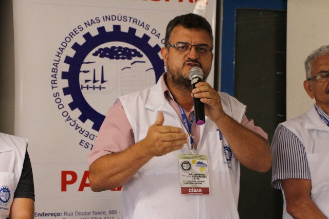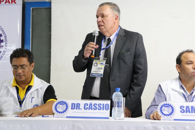 O Secretário de Geral da FETRACONSPAR, César de Oliveira, deu as boas-vindas aos presentes e convocou a mesa de abertura para suas falas iniciais, após a exibição da retrospectiva de 2017.