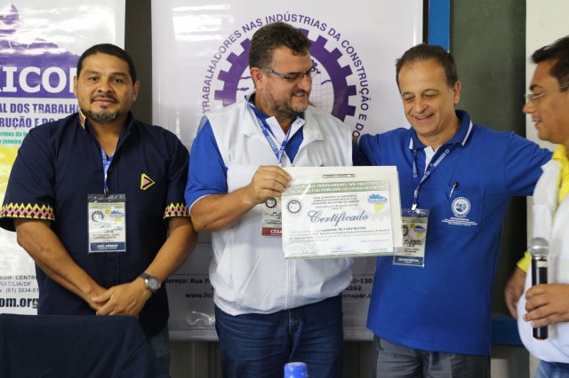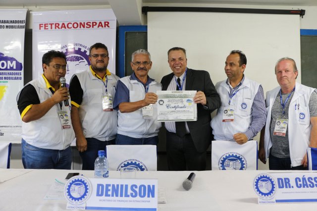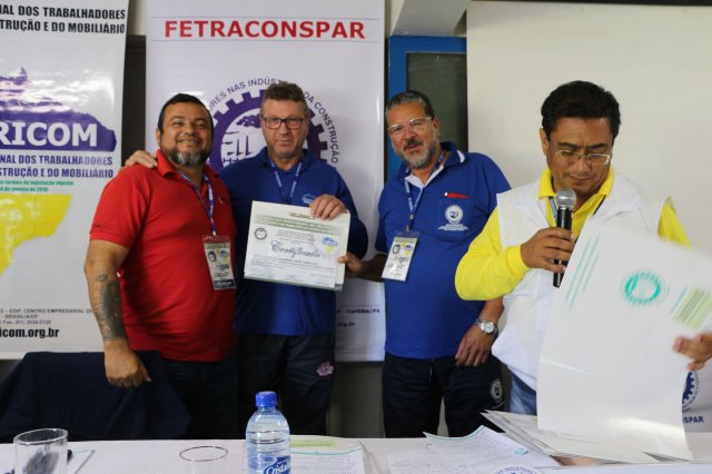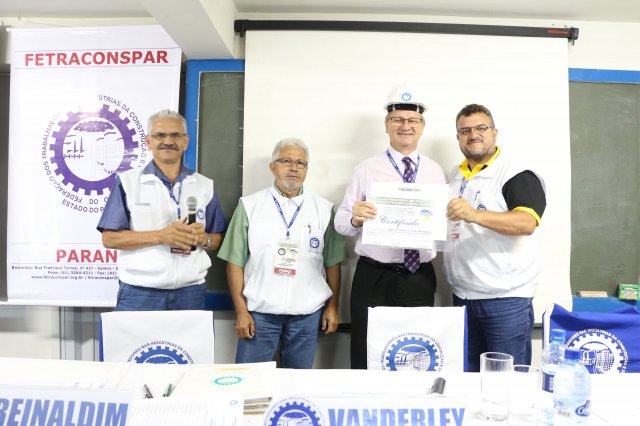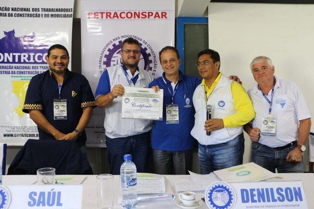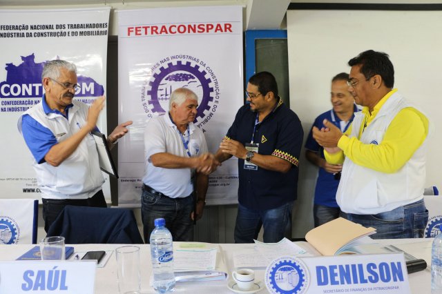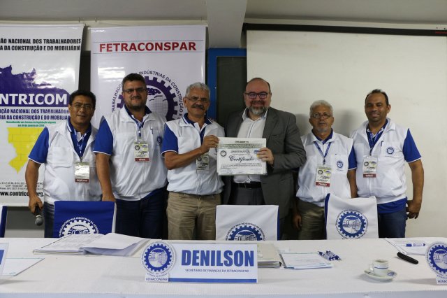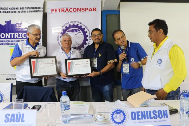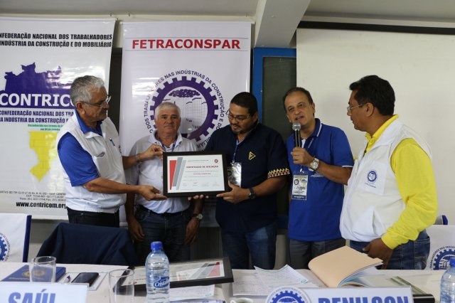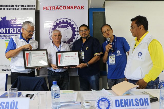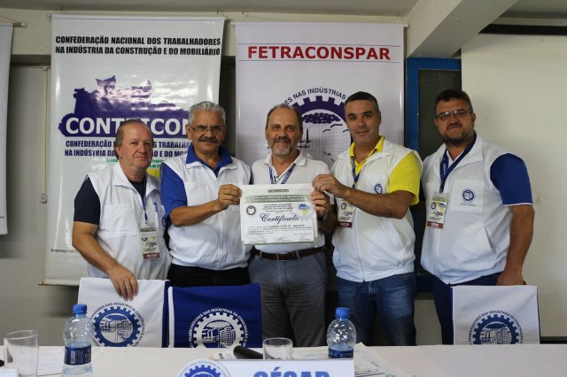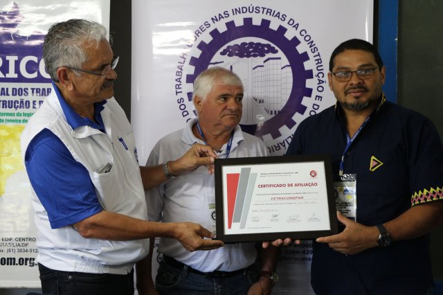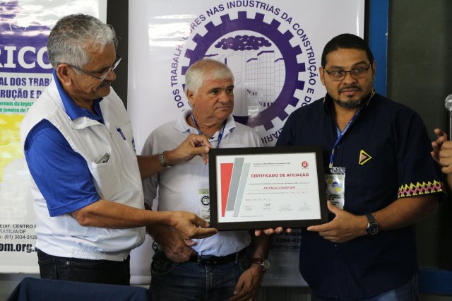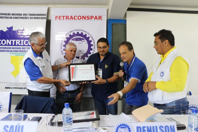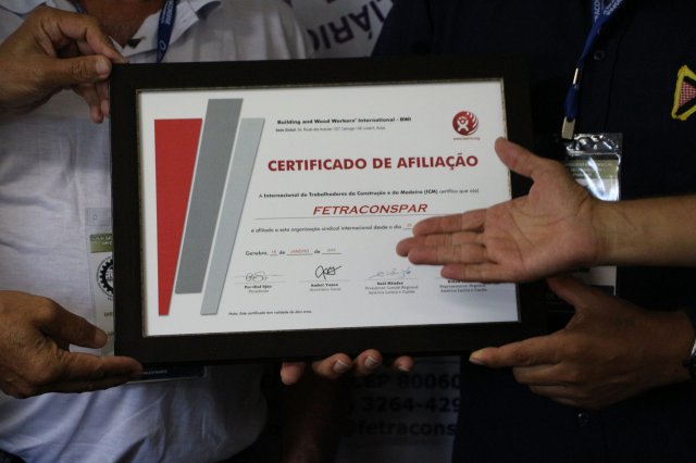 A FETRACONSPAR, recebeu das mãos do Sr. Nilton Freitas, Representante Regional da América Latina da ICM, Certificado de Afiliação a ICM - Internacional de Trabalhadores da Construção e da Madeira.