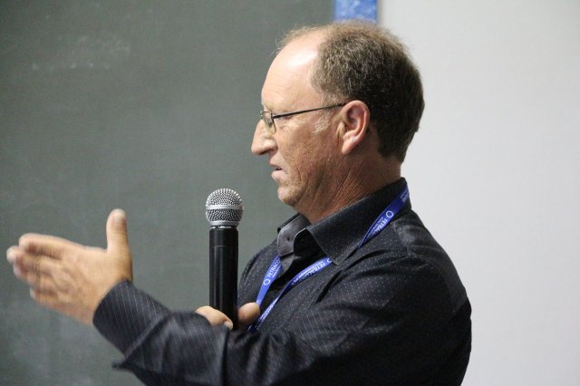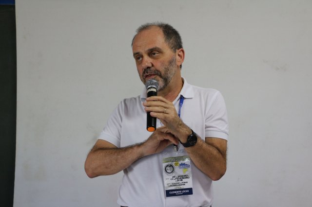 Após um intervalo, teve início às 09h45 a primeira palestra do encontro, ministrada pelo Roberto Revelino Sene - Prof. Especialista em Educação, Especialista em História do Brasil. Mestre em Ciências Sociais Aplicadas pela UEPG, Professor na Faculdade Campo Real no curso de Administração e de Pós Graduação em Sociologia pela Unicentro com o tema: Vivendo em Tempo de Guerra.