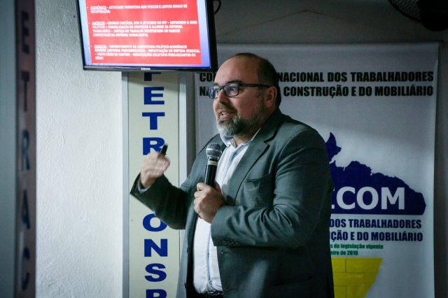 MOVIMENTO SINDICAL FRENTE A NOVA LEGISLAÇÃO TRABALHISTA" ministrada pelo palestrante: Antônio Augusto de Queiroz, Jornalista, Analista Político e Diretor de Documentação do DIAP - Departamento Intersindical de Assessoria Parlamentar. Com anos de engajamento no movimento sindical, o palestrante desenvolveu uma retrospectiva dos últimos fatos mais impactantes em relação ao cenário Politico atual e desafios do movimento sindical frente aos diversos cenários possíveis.